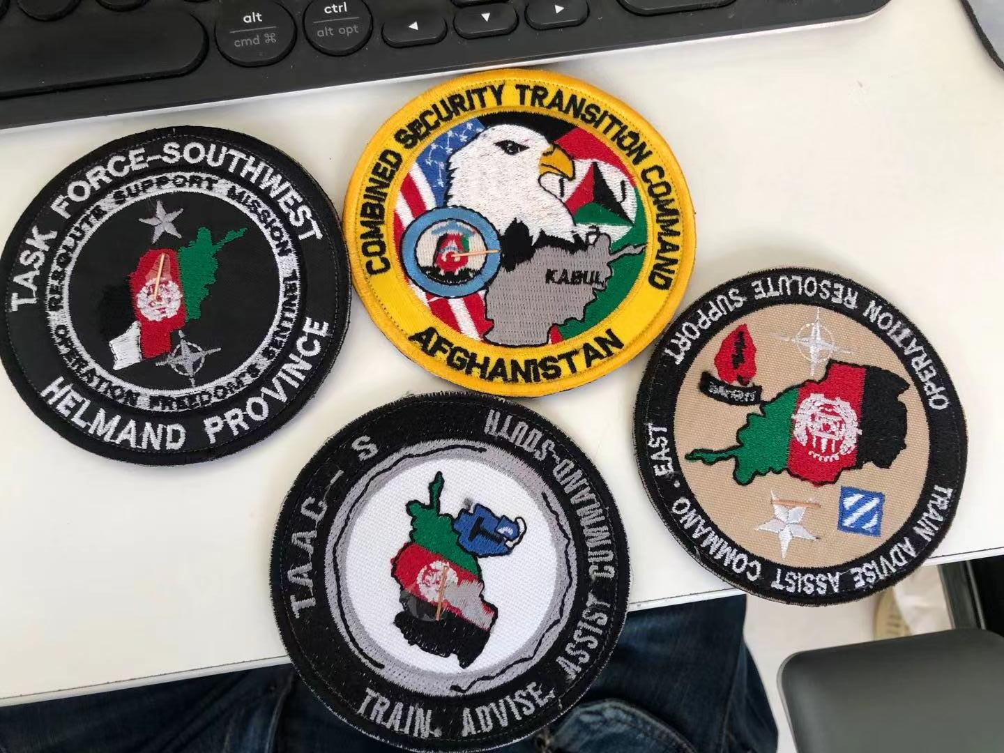 在国际组织从事安全相关工作的中国人小冉(化名)见证了这撤离前的匆匆一幕。他告诉澎湃新闻,外国士兵们基本上都归心似箭。赶上了驻阿联军撤离的最后一趟,小冉也“淘”到了外国大兵们的临别礼物——美军、德军、英军等部队的各式臂章。
